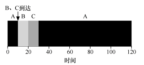 下面的表记录了A、B、C 这 3 个工作一段时间内的调度记录: