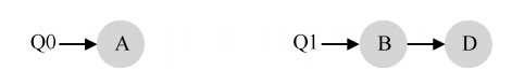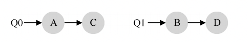 例如,假设系统中有两个 CPU(CPU 0 和 CPU 1)。这时一些工作进入系统:A、B、C 和 D。由于每个 CPU 都有自己的调度队列,操作系统需要决定每个工作放入哪个队列。可能像下面这样做: