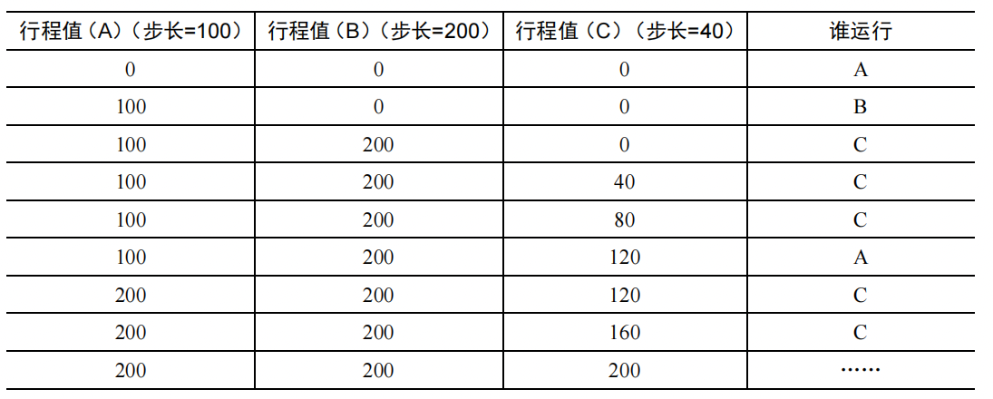 调度程序使用进程的步长及行程值来确定调度哪个进程。基本思路很简单:当需要进行调度时,选择目前拥有最小行程值的进程,并且在运行之后将该进程的行程值增加一个步长。