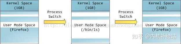 内核代码和数据总是可寻址的,为的是随时准备响应中断或者系统调用。相比之下,进程地址空间的用户态部分随着进程切换而变化。