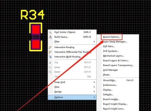 在AD软件点击鼠标,选择“Options”->“Board Options”;