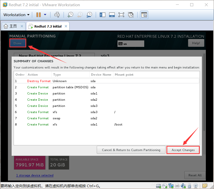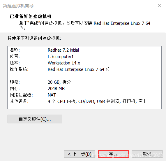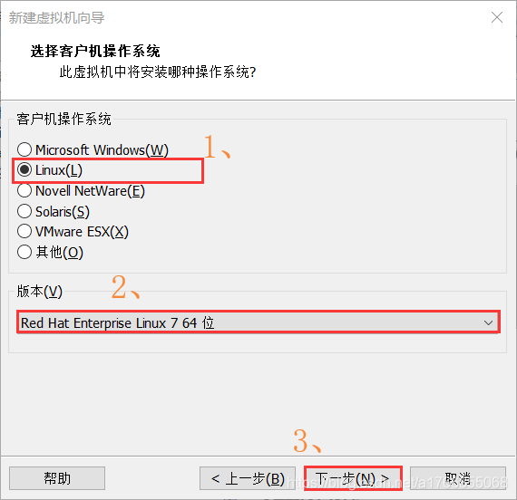 (4)选择要安装的客户机操作系统的类型:由于我们安装的系统时Linux,版本为Redhat7版本,就直接勾选,最后下一步。