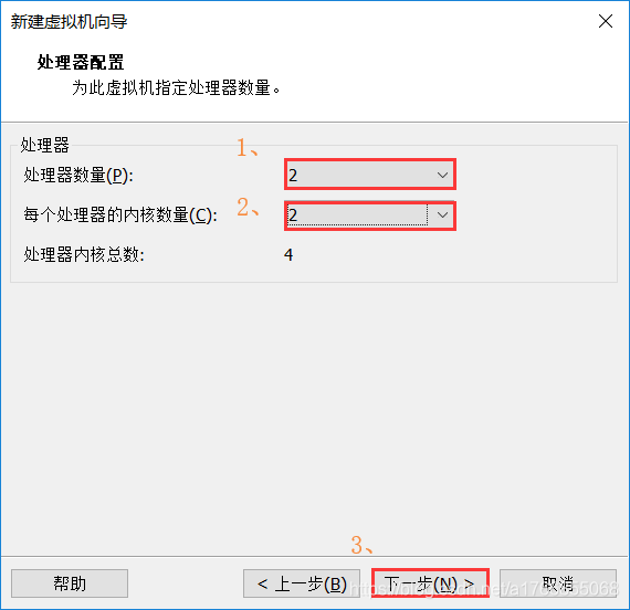 (6)设置虚拟机中处理器的内核数量,根据自己的CPU设定。