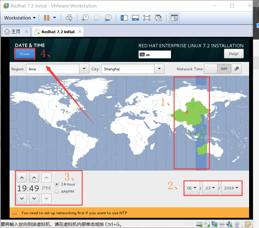 点进去之后:底下一行提示不用管,它说我们可以使用网络通过ntp服务器来校准时间。