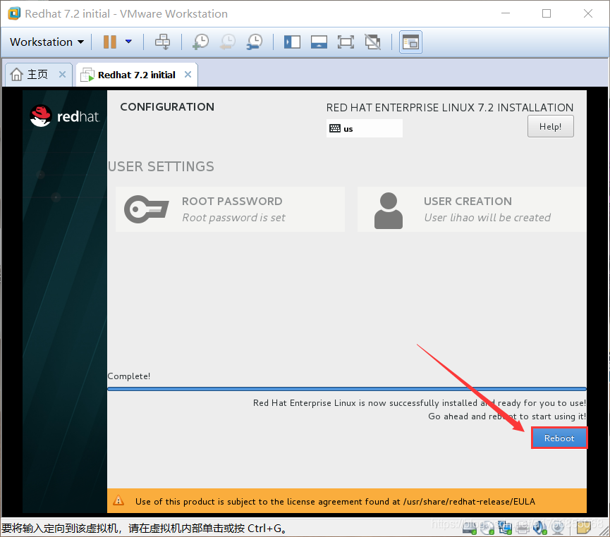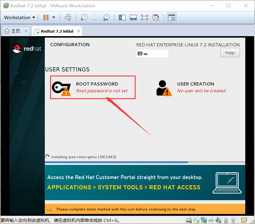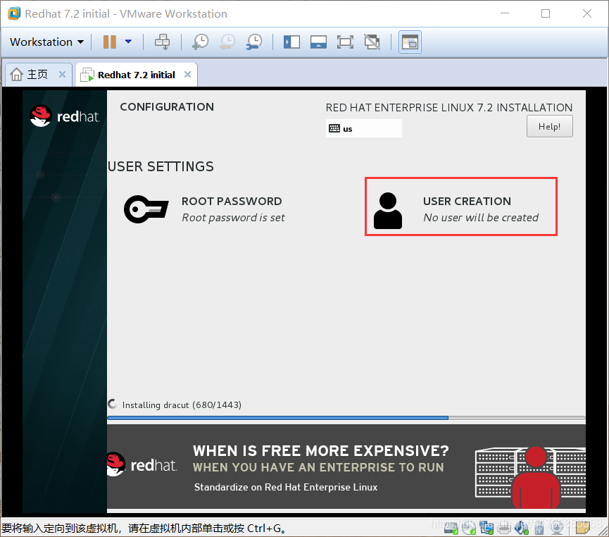8、为root用户和普通用户设置密码,除此之外我们可以看到Redhat7.2版本的总共有1443个包。