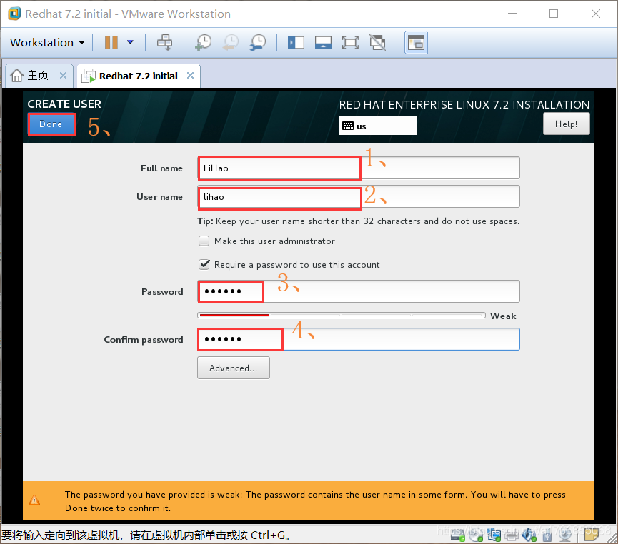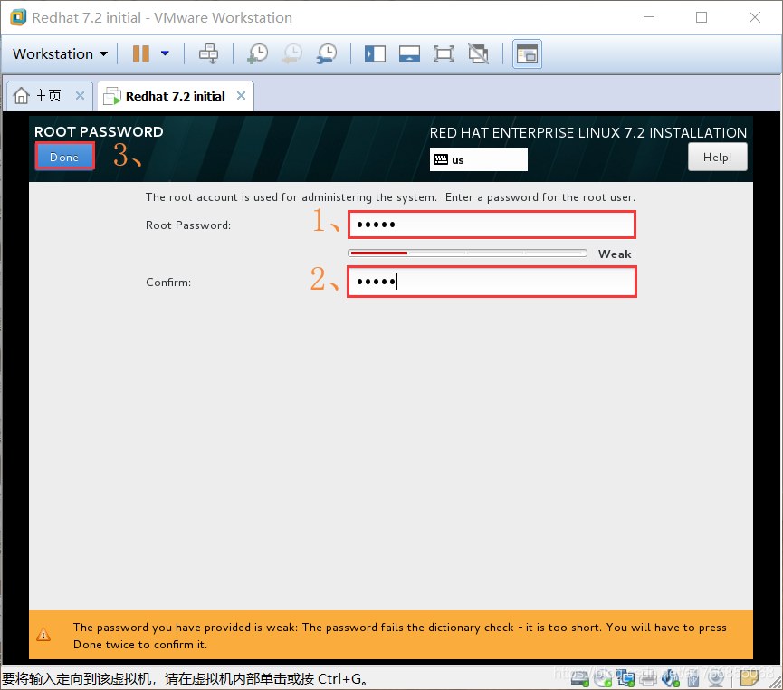 如果密码过短,它会提示弱密码,但没关系,再点击一下done就好。