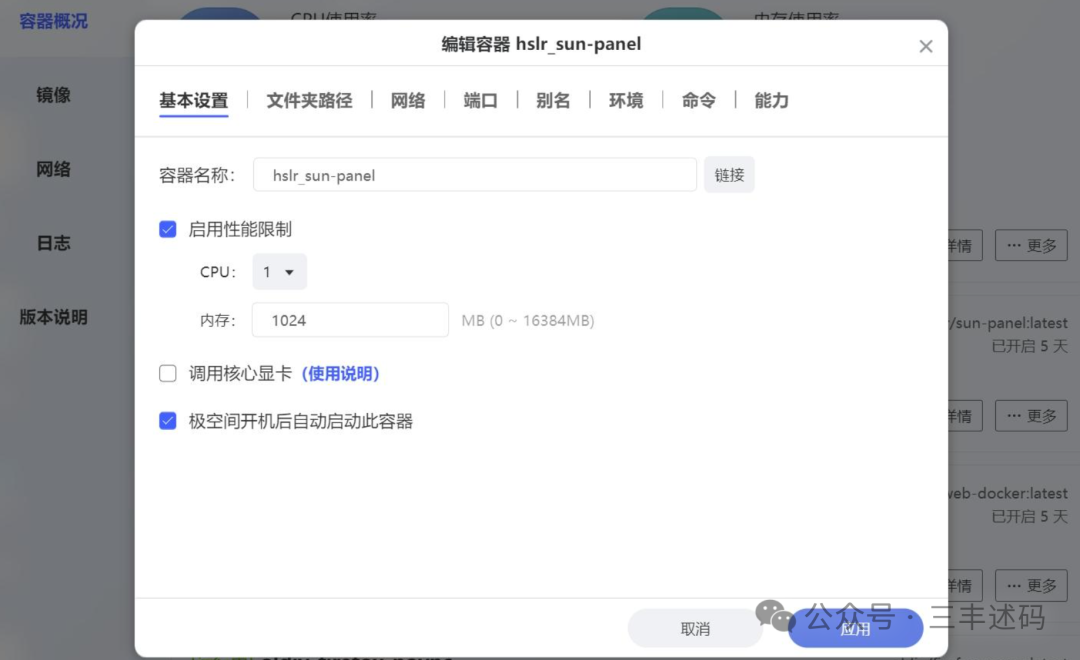 2、安装镜像:在本地镜像列表里面,找到刚刚下载的镜像文件,点击安装之后,会弹窗“编辑容器”的选项。