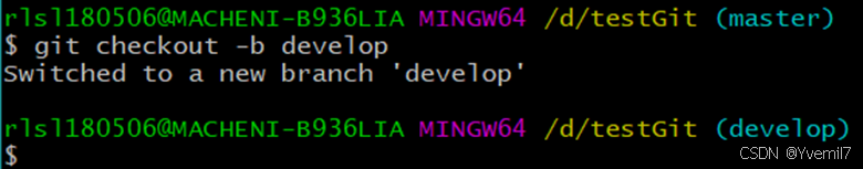 我们已经创建分支并且切换到develop上,而且该分支和远程分支develop关联。