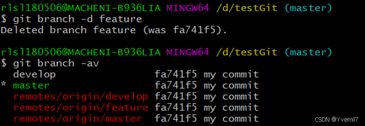 我们也可以删除对应的远程分支