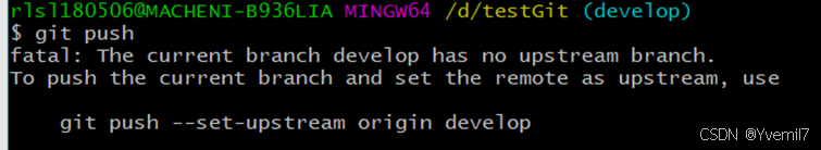 我们发现git push无法把develop推送到远程。