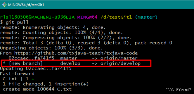 当我们通过另一个用户来查看本地对应的远程分支的时候可以看到远程分支的变化。