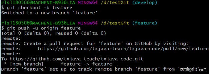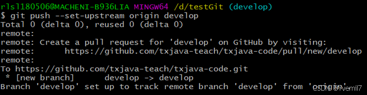 git push –set-upstream origin develop