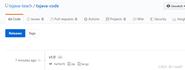 GitHub上可以看到标签已经推送,标签代码可以下载。