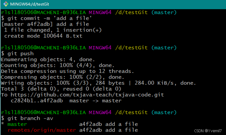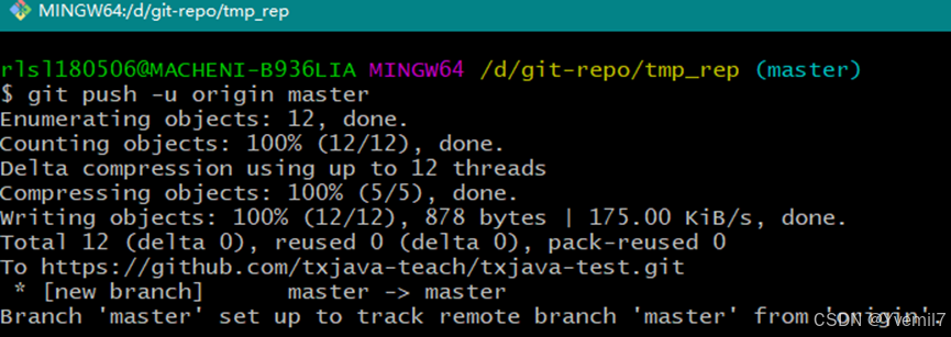 提交并且推送到远程