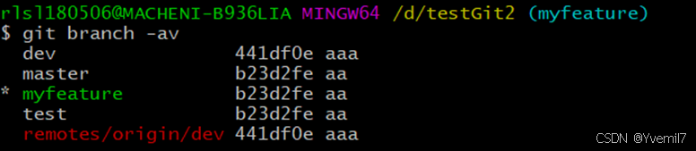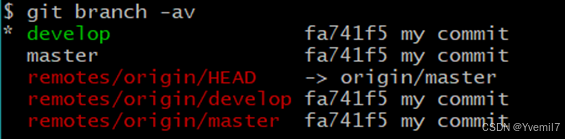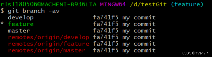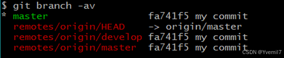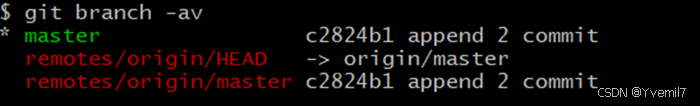 我们加上参数v可以查看本地分支和远程分支的最后提交