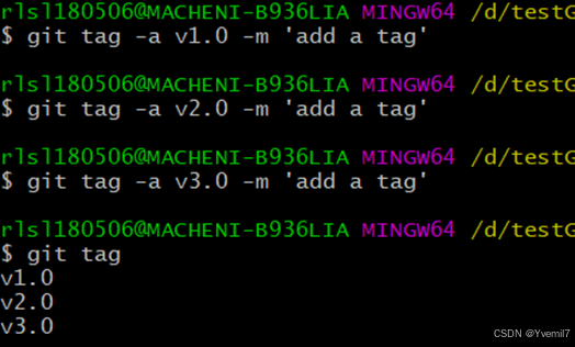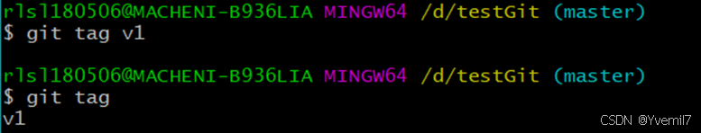 创建标签记在HEAD指针所指向的提交点创建tag(就是当前所在分支)