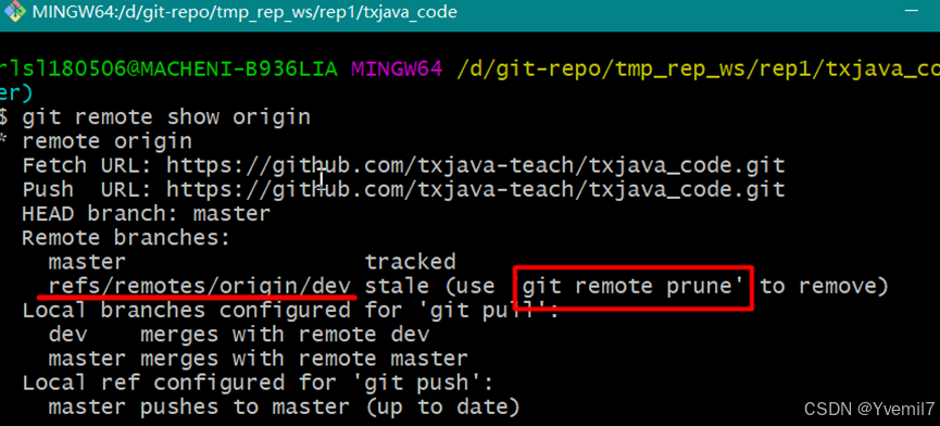查看origin远程对应的分支