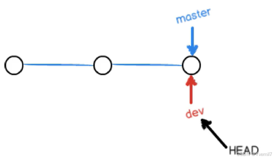 第二张图上我们可以看到创建了dev的分支,当我们切换到dev分支的时候HEAD就会指向dev
