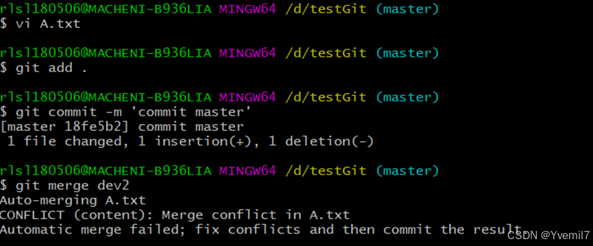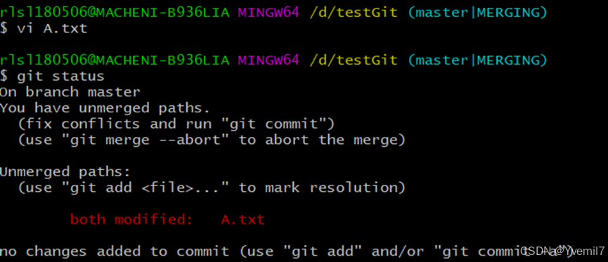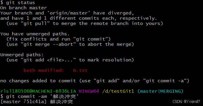 我们需要手工合并。修改后报了master的内容