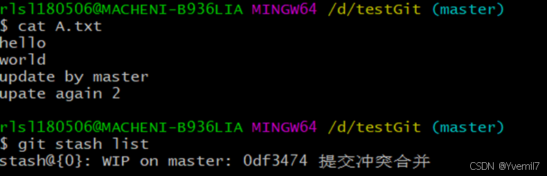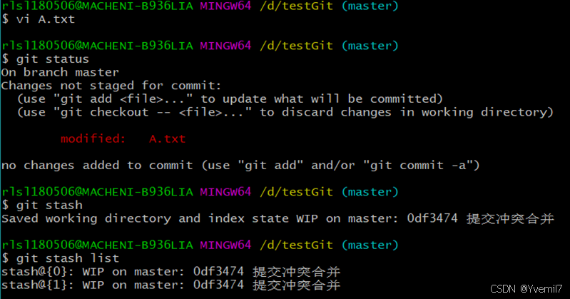 我们同样也可以再次修改文件去做stash,这样就会产生2条保存的记录