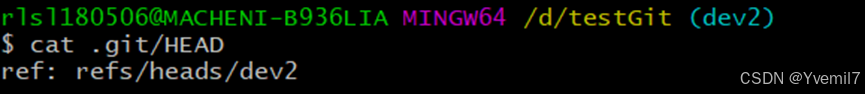 当我们进入.git文件夹查看HEAD的内容的时候可以看到,所处分支不同内部的文件指向就不同。