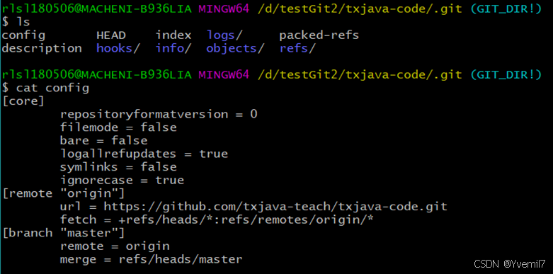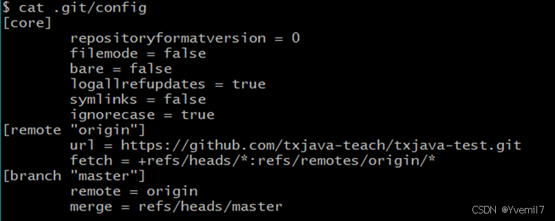 .git中的配置可以看到目前的分支为master,远程别名是origin,关联合并的是远程分支的master