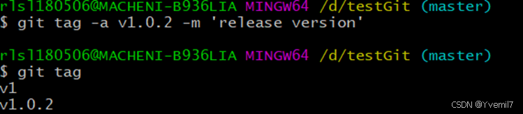 git tag -a v1.0.2 -m ‘release version’
