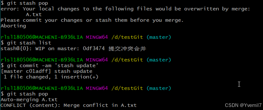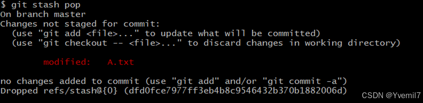 我们可以将stash过的修改恢复出来。通过pop取出最近的恢复并且删除stash中的修改