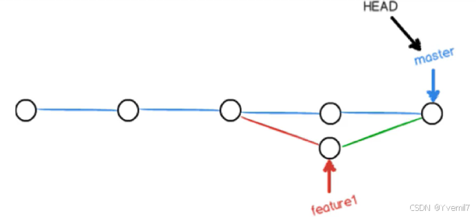 在master分支上如果合并就会出现下面的图