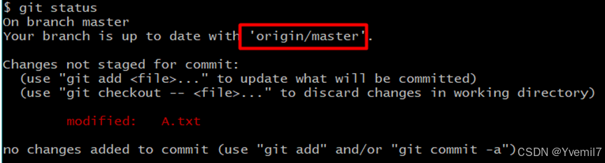 我们通过git status可以看到我们master分支和远程分支origin/master都是最新的。