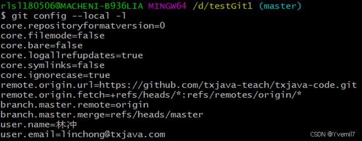 git config –local user.name ‘林冲’