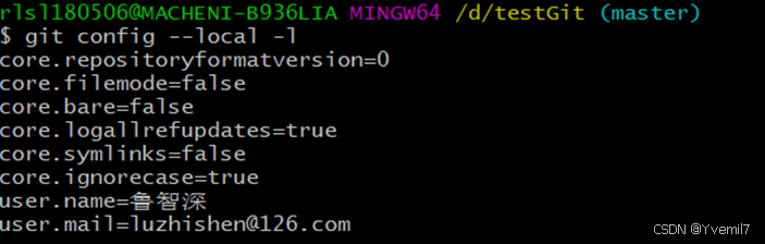 \( git config --local user.name '鲁智深'</p> <p style="margin-left:0;text-align:left;">\) git config –local user.mail ‘’