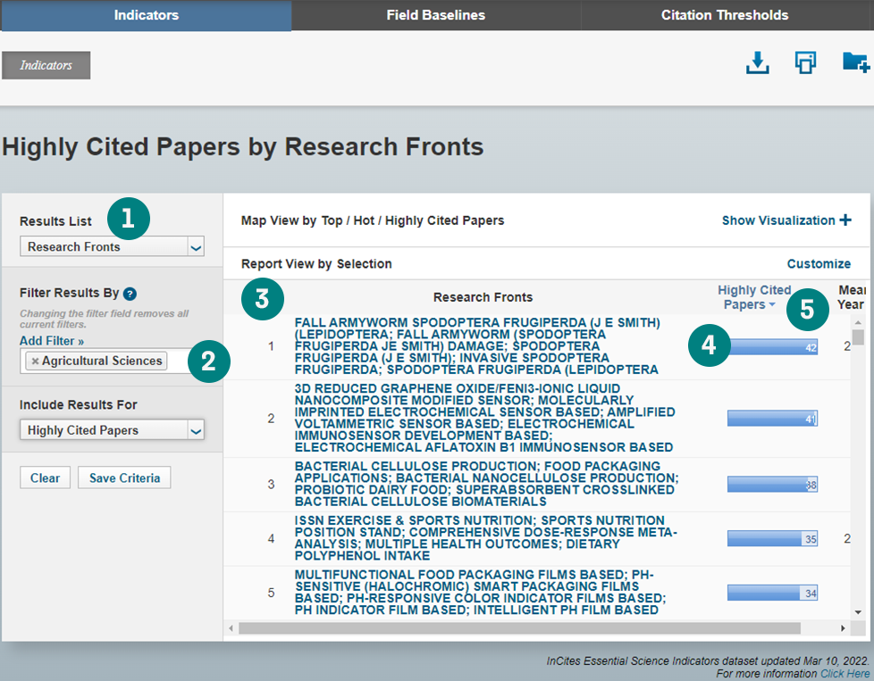 • 您可以根据多个选项来筛选数据集,包括研究领域、作者、机构、期刊、国家/地区、研究前沿等