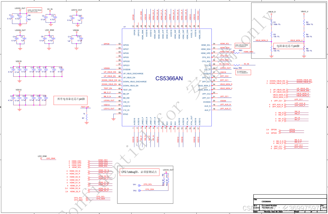 CS5366设计typec转HDMI_2lane 4k_60方案 可以外挂其他HUB芯片,可拓展网口,读卡,音频,USB3.0等其他功能