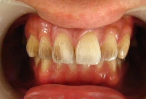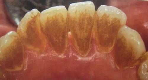 一个高职学校的学生,口腔内严重的牙结石,可能小时候没有刷过牙