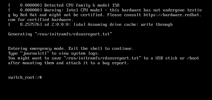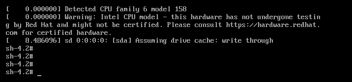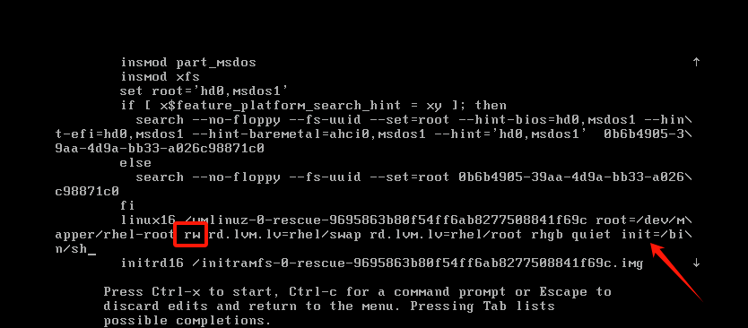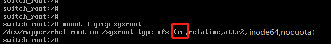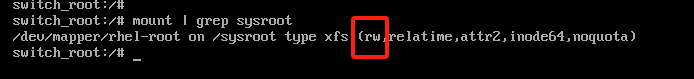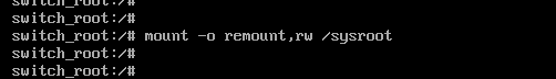3、完成上面操作后按 Ctrl+x进入命令提示符,重新以读写的形式挂载 / 下的sysroot