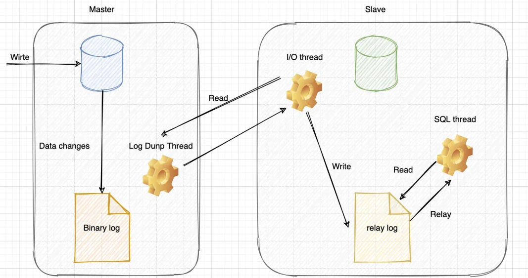 MySQL 的主从复制都是单线程的操作,主库对所有 DDL 和 DML 产生 binlog,binlog 是顺序写,所以效率很高; -