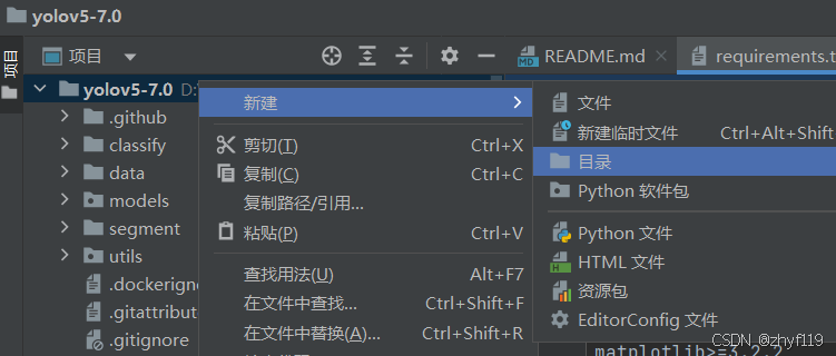 方法1:直接到工程项目”yolov5-7.0“下创建