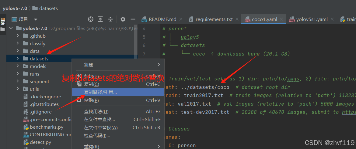 工程项目”yolov5-7.0“->data目录下->coco.yaml