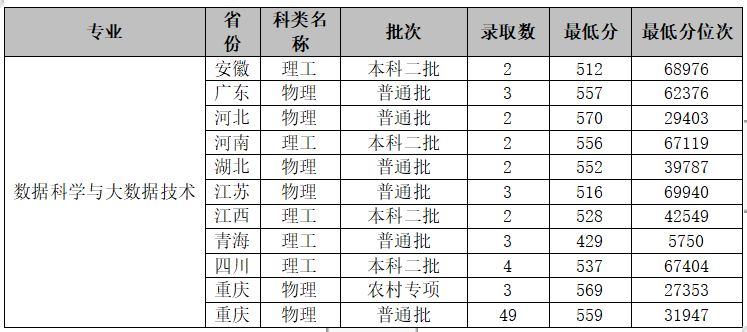 专业名称:数据科学与大数据技术专业