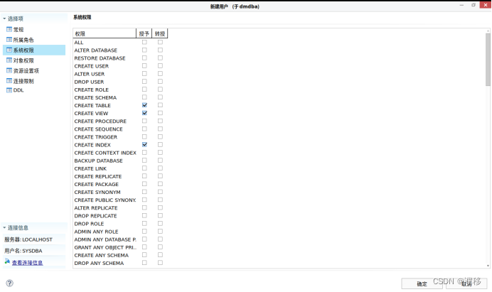 3.接下来可以设置系统权限和对象权限。