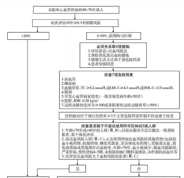 然而,适当使用阿司匹林仍然是动脉粥样硬化性心血管疾病一级预防的主要措施之一,具体推荐内容有 3 条: