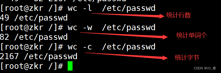 wc /etc/passwd