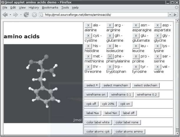 图片1-1展示Jmol applet ,它会显示分子结构。可以利用鼠标旋转和放大各个分子,从而更好地理解分子结构。在发明applet 的时代,用网页是无法实现这种直接的操作的,那时只有基本的JavaScript而没有HTML画布。