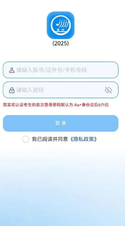 考生手机下载安装“贵州招考”APP(通过华为应用市场、苹果appstore或腾讯应用宝下载安装最新版本)。首次登录需通过“贵州招考”APP进行人脸识别,完成实名认证并由本人设定登录密码。