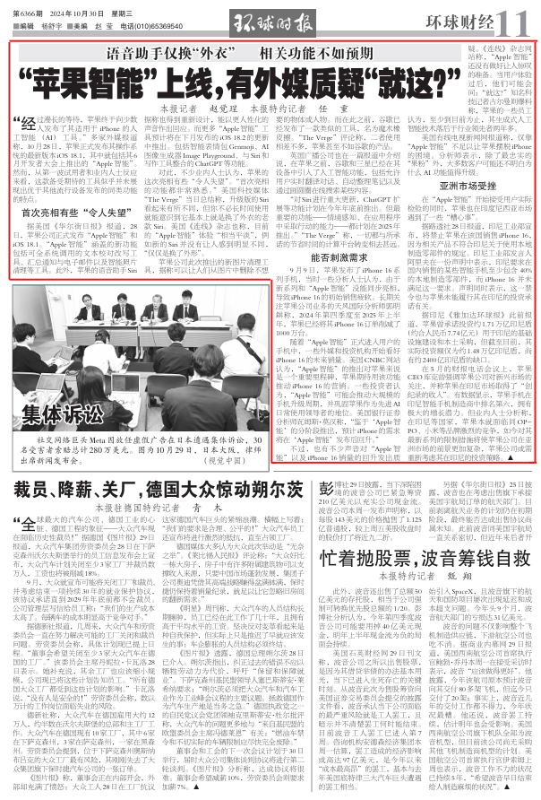 “对Siri进行重大更新,ChatGPT 扩展等功能计划在今年年底前推出。但最重要的功能——情境感知、在应用程序中采取行动的能力——都计划在2025年推出。”“The Verge”称,一切都与所承诺的节省时间的计算平台转变相去甚远。