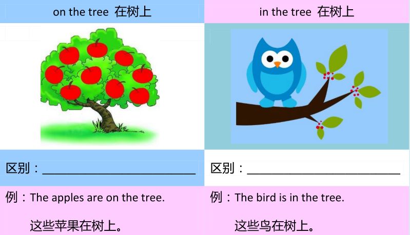 in the tree 在树上 (外来的物品,比如小鸟、蚂蚁)