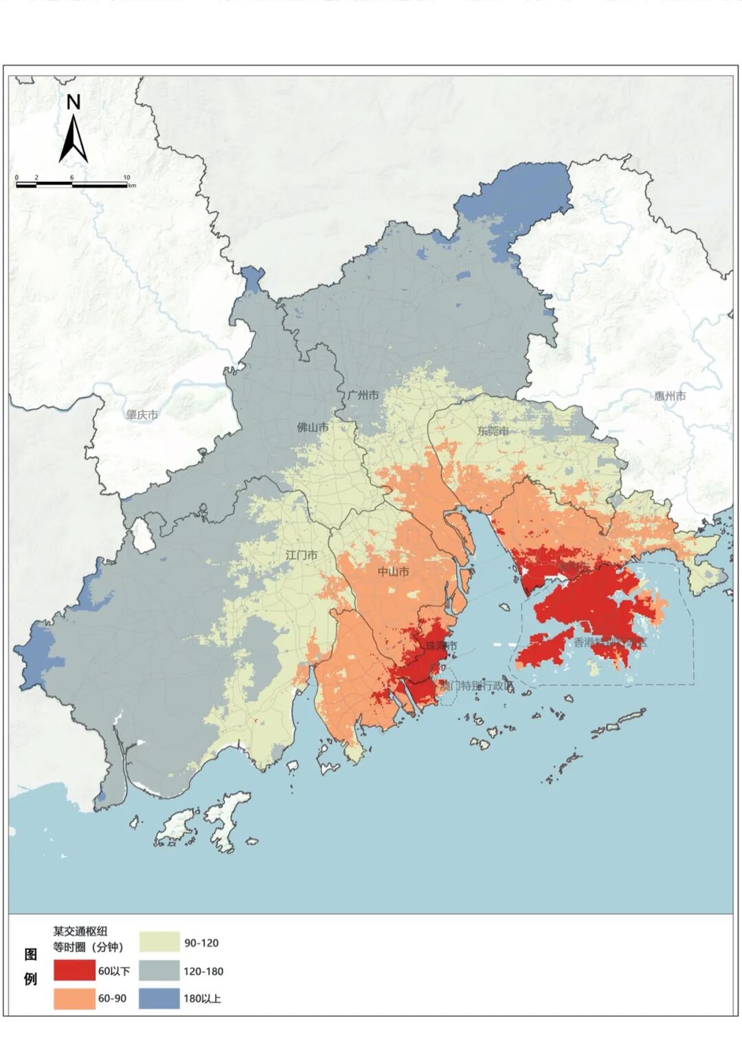 交通枢纽辐射范围分析是发展策略研究的重要内容,通过分析交通枢纽辐射范围可以分析外地人口往来的便捷程度,可支撑相关设施布局规划。运用本专利技术可以实现区域级的高精度等时圈分析,使规划人员获取高时效性、高精度的区域级空间知识,从而支撑区域发展策略研究。