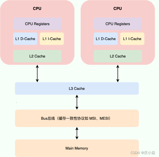 CPU 为了解决内存缓存不一致性问题可以通过制定缓存一致协议(MESI)或者其他手段来解决。 这个缓存一致性协议指的是在 CPU 高速缓存与主内存交互的时候需要遵守的原则和规范。不同的 CPU 中,使用的缓存一致性协议通常也会有所不同。