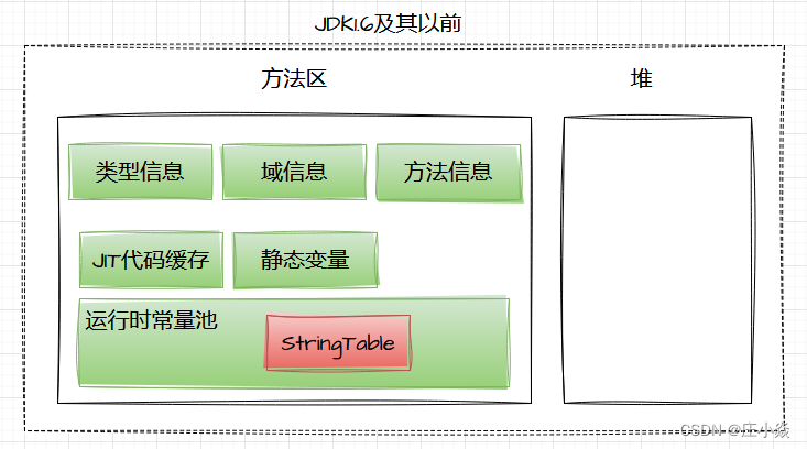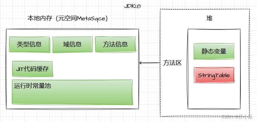 尽管所有的方法区在逻辑上是属于堆的一部分,但一些简单的实现可能不会选择去进行垃圾收集或者进行压缩。”但对于 HotSpotJVM 而言,方法区还有一个别名叫做 Non-Heap(非堆),目的就是要和堆分开。所以,方法区看作是一块独立于 Java 堆的内存空间。